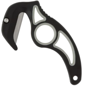 - fixed gut hook knife with stainless steel interchangable blades. Handle constructed from TPE with a rubbe overmold for anti slip grip! Comes with 4 replacement blades and a sheath for easy transportation.