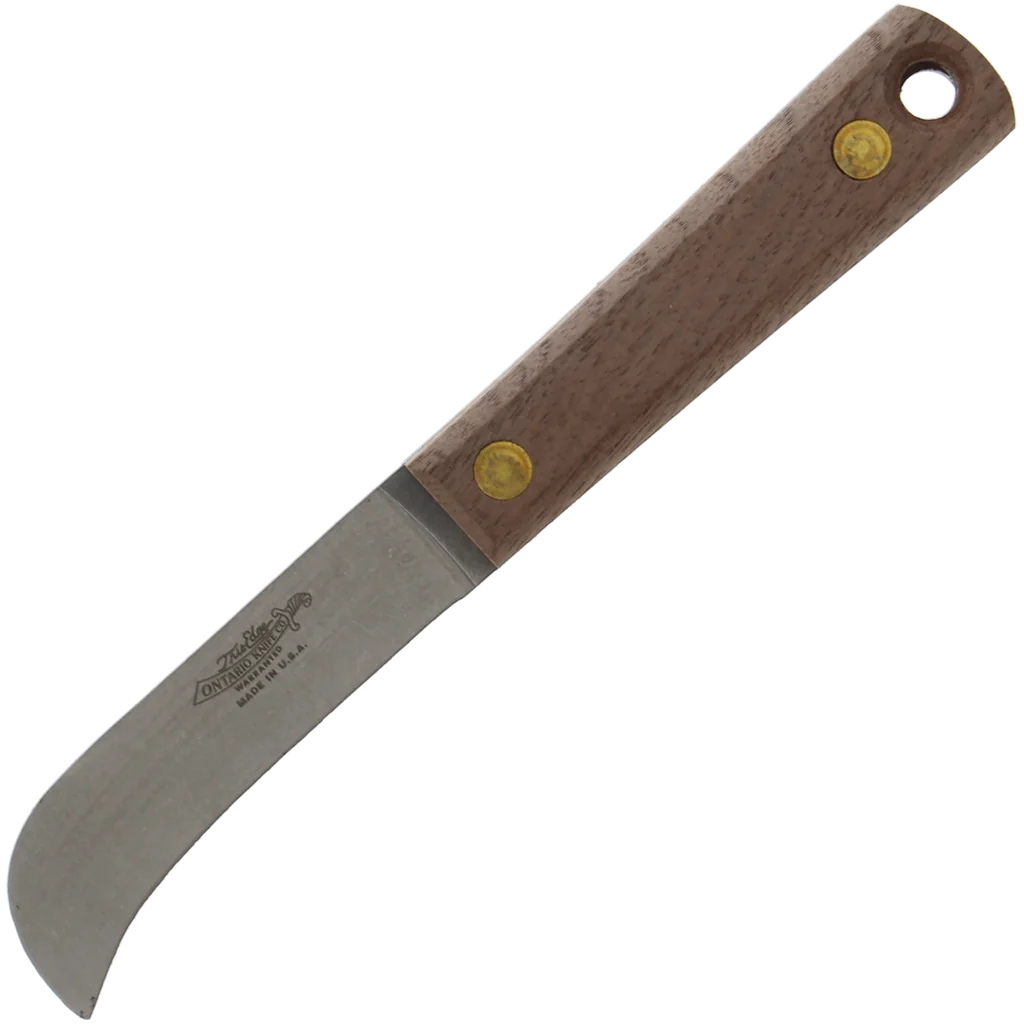 The Ontario 3" Grape/ Lettuce Knife features a 3" knife blade made of 1095 high carbon steel. The knife also features a 4" hardwood handle.