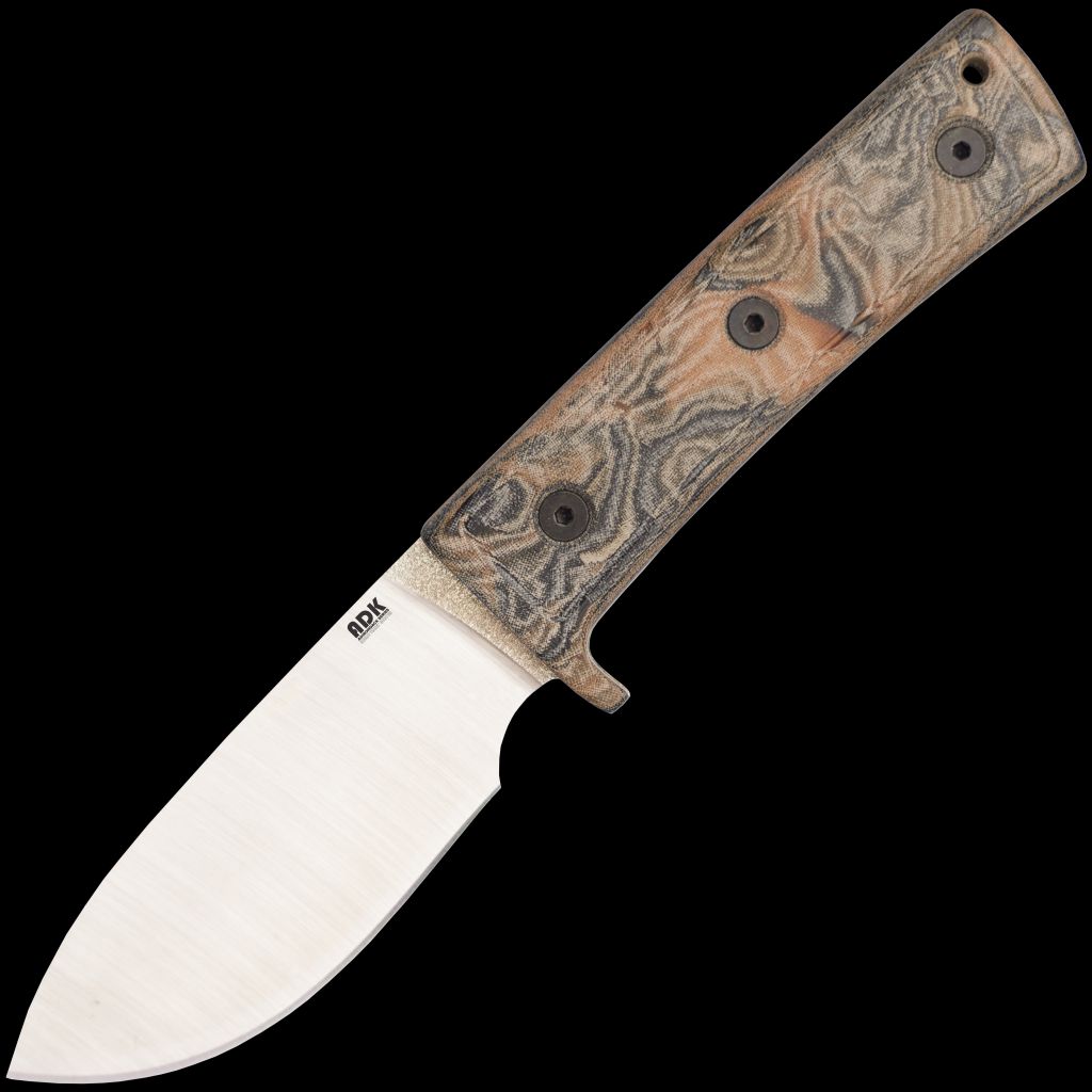 New for 2021, this broad, flat ground blade Hunting knife is named for the Keene Valley in the Adirondacks known as the gateway to the High Peaks and the communities of the valley. The ADK Keene Valley Hunter Knife blade is ideal for superior cutting and slicing geometry making it ideal for skinning large game and a multitude of cutting applications. Featuring a 3.7" stainless steel blade with a hardness of 48-52 HRC, the Adirondack Series (ADK) Keene Valley Hunter Knife, is equipped with a beautiful Micarta Handle. The Keene Valley Hunter Knife comes complete with a brown leather sheath and measures 9.4" in overall length.