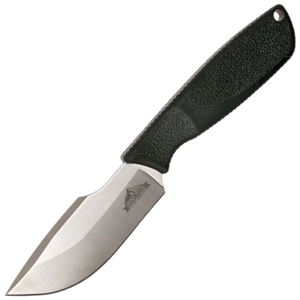 - The Hunt Plus Skinner features a 4" stainless steel blade and a 5.19" black synthetic rubber handle, providing excellent grip.