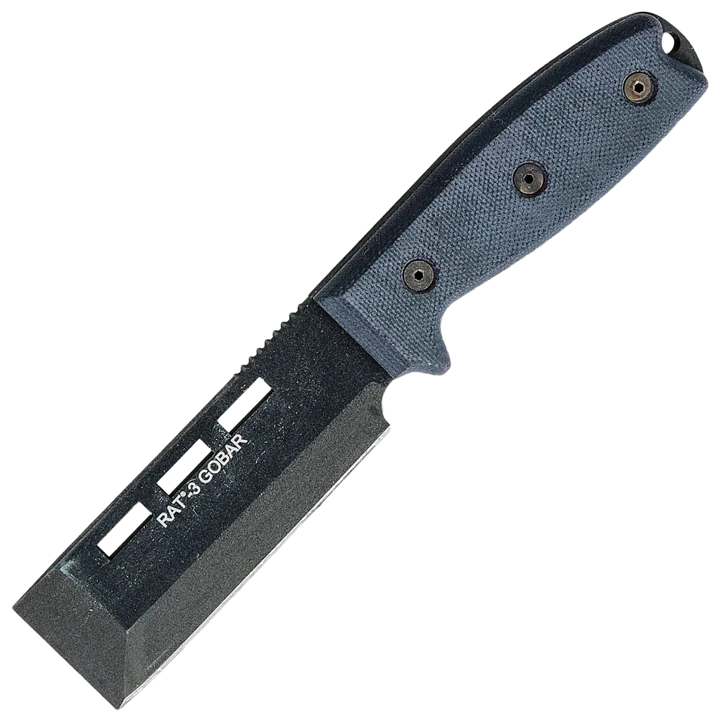 The Ontario RAT-3 Gobar 8660 is a solid survival knife and an alternative to the original Rat-3 model. The chisel-shaped blade is made from 1075 carbon steel, which is strong and easy to sharpen. The extremely sustainable powder coating on the blade protects it from the increased corrosion sensitivity of the carbon steel. Still, we recommend you keep this knife dry and possibly slightly greasy. The wonderful usage qualities of the steel guarantee a lifetime of fun. The knife is enhanced with a micarta handle. The handle feels slightly coarse. This is great because it is comfortable to hold and offers enough grip.