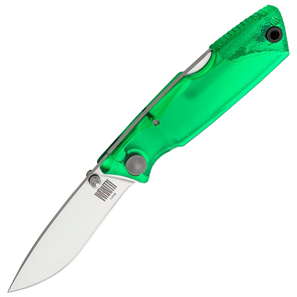The Ontario Wraith Folder Ice Collection is a practical pocket knife, for a great price. There is already a black version of the Wraith. That was when Ontario decided to produce one with a handle made from transparent plastic. This allows you to see the mechanism behind the lock, something that usually remains hidden between the scales. The result is that this Ontario Wraith Ice is a great pocket knife for any collector. Of course this knife is also amazing to use! Use it for boxes, paper, while working around the house or while camping or hiking. You quickly open this pocket knife with one hand with the help of the thumb stud. When opened it is locked by a backlock, a mechanism you can see through the scales. The blade is made from 1.4116 steel. A stainless type of steel that is easy to sharpen.
