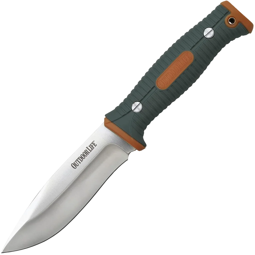 This full-tang knife has a 4.75-inch 7Cr17MoV stainless steel blade. Just like the rest of the collection, it has an injection moulded ABS handle. The knife has a nicely shaped drop-point blade that offers a ton of utility. It comes with solid sheath sporting a multi-position clip. The blade locks into the sheath nicely, and won't shake loose even when jostled around or flipped upside down. Outdoor Life camp knives and blades are built with thoughtful designs and crafted from high-quality materials, for years of durability and performance at an exceptional value.