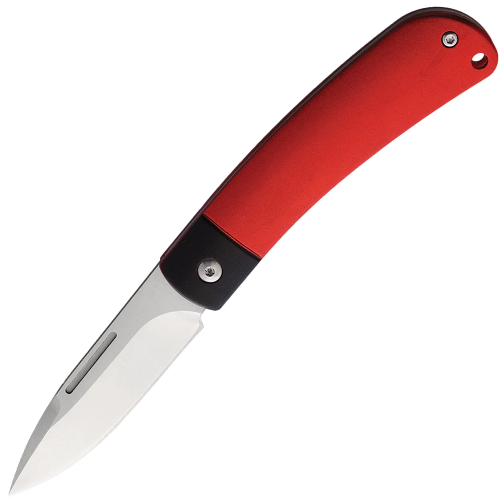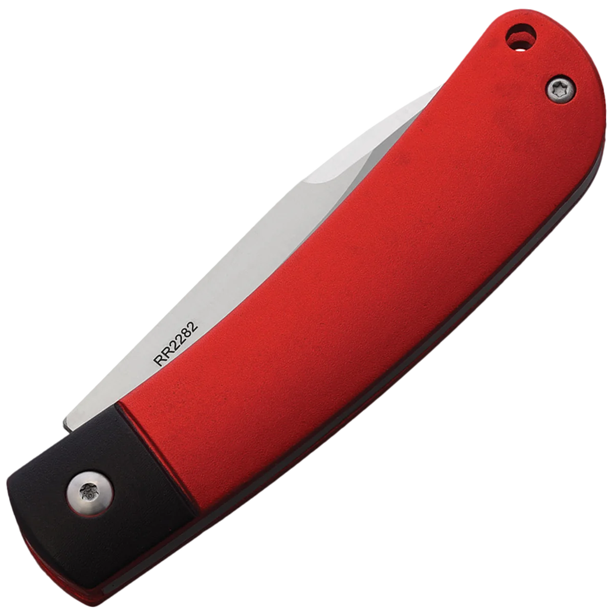 The Apta is Rough Ryder's modern take on the traditional slip joint, offering an irresistible fusion that feels great and works even harder! This red aluminum version features a 2.75" VG-10 stainless steel drop point blade with a satin finish. The handles are red aluminum with black aluminum bolsters, stainless steel liners and Torx hardware, and a lanyard hole. It's 3.75" closed and weighs 5.2oz. Includes a set of extra screws, a Torx driver, and a zippered black nylon mini storage pouch.