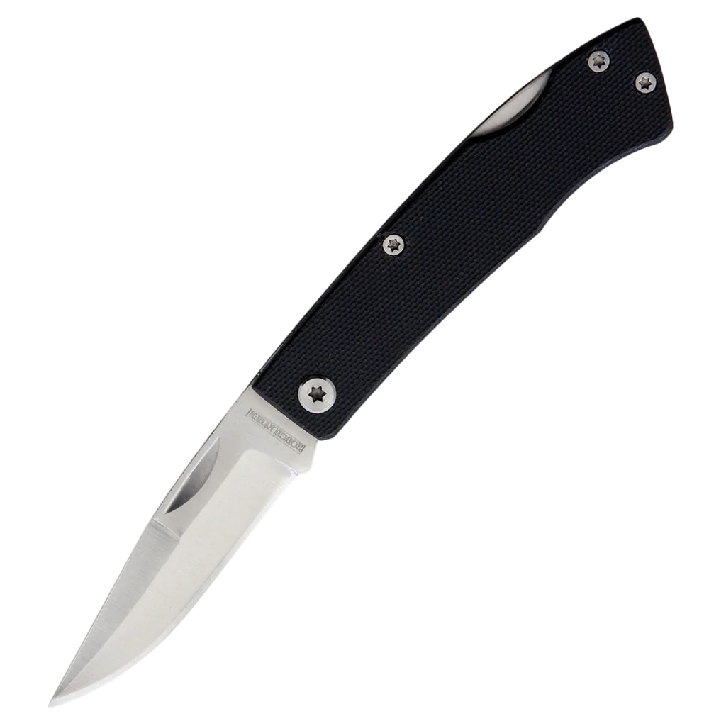 The Rough Ryder Black G-10 Lockback features a 440A stainless steel satin finish 2.62" clip point blade with a half stop and a nail nick. The handles are black G-10 with triple screw rivets and stainless steel liners. It’s 3.5" closed and weighs 2.26 oz.