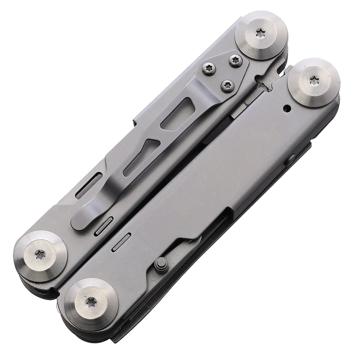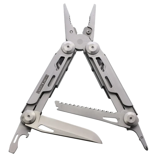 The Rough Ryder Calypso Multitool is a compact, lightweight, and versatile tool that's perfect for everyday carry. It features a 3" folding saw with a D2 tool steel blade and a 2.75" sheepsfoot blade. The saw is perfect for cutting through branches and other materials, while the sheepsfoot blade is great for general utility tasks. With weight-reducing skeletonized handle and a stainless steel pocket clip. It's 4" closed and weighs 8.08oz. Tools include: Pliers l Bottle opener l Can opener l Phillips screwdriver l Screwdriver tip. D2 tool steel large and saw blades.