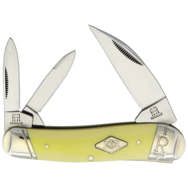 All the knives in the Rough Ryder Classic Carbon Series feature mirror polished T10 carbon steel blades with nail nick pulls. Renowned for its exceptional edge retention and durability, T10 carbon steel ensures reliable performance for a variety of cutting tasks. The handles are smooth yellow polymer with brass pins and liners, embossed nickel silver Slant R bolsters, and a diamond-shaped nickel silver Rough Ryder Classic Carbon shield. This Rough Ryder Classic Carbon Swayback Whittler has Wharncliffe and pen blades. It's 3.75" closed and weighs 1.5oz.