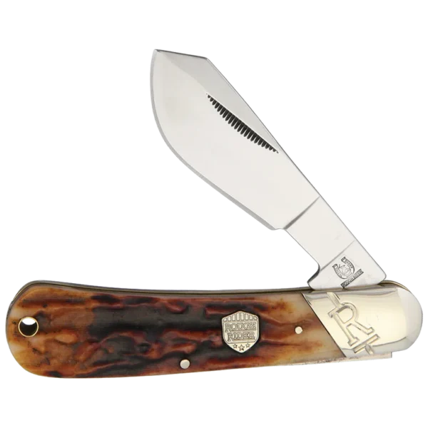 The Rough Ryder Brown Stag Bone Cotton Sampler Folding Knife is a tribute to traditional craftsmanship, combining classic design with modern materials for a knife that's as functional as it is handsome. This knife is a reliable companion for those who appreciate the timeless appeal of a well-made blade. Whether you're a collector or a working professional, the Brown Stag Bone Cotton Sampler offers the durability and performance you expect from Rough Ryder. At the heart of this knife is the 440A stainless steel cotton sampler blade, designed with a satin finish that enhances its clean, straightforward look. The blade is crafted to handle the specific tasks associated with cotton sampling, but its versatility makes it a useful tool for a variety of cutting needs. The 440A stainless steel offers excellent resistance to corrosion and wear, ensuring that the blade remains sharp and effective through extensive use. The match strike pull not only adds to the knife's vintage appeal but also provides a reliable way to open the blade with ease. The handle of the Brown Stag Bone Cotton Sampler is where the knife truly shines. Made from brown stag bone, the handle features a rich, natural texture that gives the knife a rugged, earthy feel. This material is both durable and comfortable in the hand, offering a secure grip for precision work. The handle is adorned with nickel silver pins and bolsters, which add a touch of elegance and ensure the knife's longevity. The nickel silver shield is a nod to Rough Ryder's heritage, while the lanyard hole adds a practical element, allowing for easy carry options or attachment to gear.