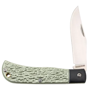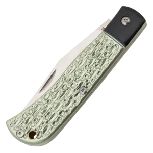 Introducing the Rough Ryder Green Jigged Aluminum, a perfect companion for your everyday adventures. This exquisitely crafted pocket knife boasts a captivating green jigged aluminum handle that exudes an aura of sophistication and ruggedness. Crafted with precision and care, this Rough Ryder pocket knife features a robust 3.25-inch, plain-edge, clip point blade forged from premium VG-10 stainless steel. Renowned for its exceptional sharpness and edge retention, VG-10 steel ensures reliable cutting performance for all your daily tasks. The satin finish of the blade adds a touch of elegance while providing enhanced corrosion resistance. Enhancing both its aesthetics and functionality, this exceptional pocket knife is adorned with black aluminum bolsters that complement the green jigged aluminum handle. The stainless steel liners and brass lanyard tube further accentuate its durability and classic appeal.