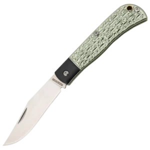 Introducing the Rough Ryder Green Jigged Aluminum, a perfect companion for your everyday adventures. This exquisitely crafted pocket knife boasts a captivating green jigged aluminum handle that exudes an aura of sophistication and ruggedness. Crafted with precision and care, this Rough Ryder pocket knife features a robust 3.25-inch, plain-edge, clip point blade forged from premium VG-10 stainless steel. Renowned for its exceptional sharpness and edge retention, VG-10 steel ensures reliable cutting performance for all your daily tasks. The satin finish of the blade adds a touch of elegance while providing enhanced corrosion resistance. Enhancing both its aesthetics and functionality, this exceptional pocket knife is adorned with black aluminum bolsters that complement the green jigged aluminum handle. The stainless steel liners and brass lanyard tube further accentuate its durability and classic appeal.