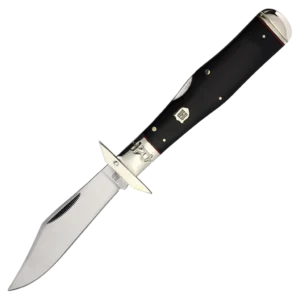 Part of the Rough Ryder Highland Black Micarta series, this knife is built with the same attention to detail and quality that has made Rough Ryder a trusted name among knife enthusiasts. It’s not just a tool; it’s a reliable companion that’s ready to tackle any task you throw at it. At the core of this knife is the 440A stainless steel blade, meticulously crafted to deliver superior sharpness and durability. The micarta handle’s sleek black appearance is complemented by nickel silver pins and bolsters, adding a touch of sophistication to the overall design. Brass liners and red underliners provide a subtle contrast, enhancing both the aesthetics and structural integrity of the knife. This Rough Ryder Highland Black Micarta Large Swing Guard features a 4" clip point blade, a swing guard, and a sturdy back lock. It's 5.38" closed.
