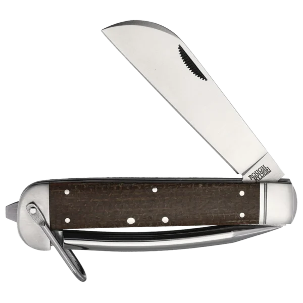 Elevate your everyday carry game with the Rough Ryder Brown Micarta Marlin Spike. This exceptional EDC pocket knife is a true blend of practicality and sophistication, designed for those who appreciate fine craftsmanship and reliable performance. The Rough Ryder Brown Micarta Marlin Spike features a plain edge 440A stainless steel sheepsfoot blade, offering exceptional sharpness and durability. The sheepsfoot blade design is perfect for precise cutting tasks, providing excellent control and reducing the risk of accidental piercing. Complementing the blade is a marlin spike, a tool traditionally used in marine environments for splicing ropes and untying knots. This combination of blade and spike makes this knife incredibly versatile, ready to tackle a wide range of tasks both on land and at sea. Both the blade and marlin spike boast a satin finish, adding a touch of understated elegance to the knife. This finish not only enhances the knife’s aesthetic appeal but also provides an extra layer of protection against corrosion and wear.