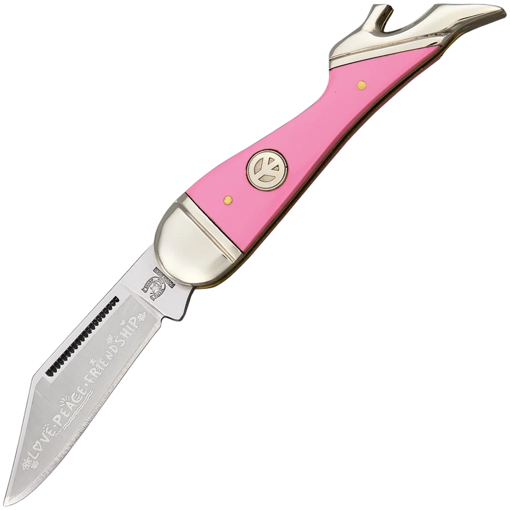 • You open this knife with two hands and a slipjoint prevents accidental closing.
