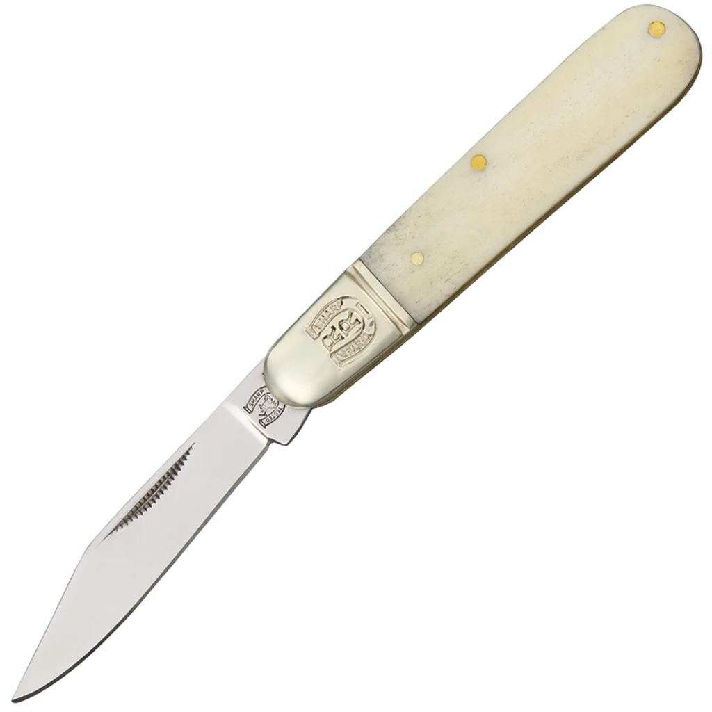 The Rough Ryder Barlow pocket knife is the quintessential tool for those who value reliability and ergonomic design in a cost-effective package. This slip joint knife, with its nail nick opener, harks back to a time-tested old school design, offering both comfort and efficiency in use. Its compact and sturdy build makes it a dependable choice for everyday carry, blending seamlessly with modern needs while retaining its classic charm. The folding knife features a 2.125" 440A stainless steel clip point blade, with white smooth bone handles and nickel silver bolsters, finished with brass liners.