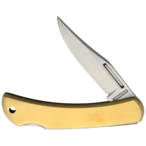 Introducing the Rough Ryder Small Brass Lockback Folding Knife – a testament to classic design and enduring functionality. Crafted with meticulous attention to detail, this pocket knife embodies the spirit of traditional craftsmanship that Rough Ryder is renowned for. Whether you're an avid collector or seeking a dependable everyday carry companion, this knife is sure to impress. The heart of this knife lies in its razor-sharp, 2.25” clip point blade, forged from durable 440A stainless steel. The blade’s satin finish exudes an understated elegance, perfectly complementing the timeless aesthetic of the knife. Encasing the blade is a beautifully-crafted brass handle that feels substantial and comfortable in hand. The polished brass not only adds a touch of sophistication but also develops a unique patina over time, telling the story of your adventures. A long pull ensures effortless blade deployment, while the sturdy lockback mechanism securely locks the blade in place, providing peace of mind during use.