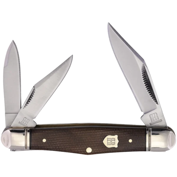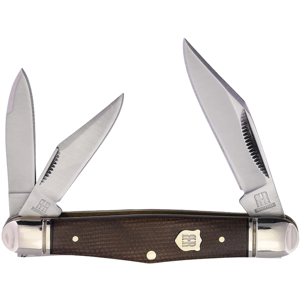 Introducing the Rough Ryder Tater Skin Brown Micarta Whittler – a slice of tradition with a side of whimsy! As part of Rough Ryder's delectable Tater Skin Series, this knife is a feast for the eyes and the hands. Crafted with care, it features 440 stainless steel blades adorned with nail nick pulls and a satin finish, ensuring both durability and style. But what truly sets this knife apart is its handles. Made from brown burlap Micarta, they're as comforting as a warm baked potato on a chilly evening. With three blades, including the perfect whittling companion, this Whittler is a must-have for any traditionalist or carving enthusiast. Compact yet capable, it's ready to tackle any task with grace and charm. Whether you're whittling away the hours or simply admiring its handsome design, the Rough Ryder Tater Skin Brown Micarta Whittler is sure to satisfy your craving for quality craftsmanship.