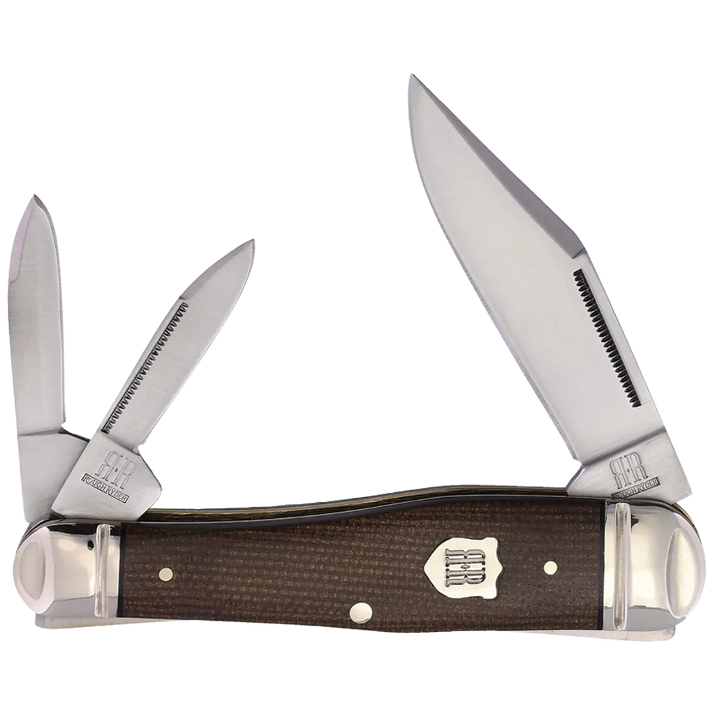 Introducing the Rough Ryder Tater Skin Brown Micarta Whittler – a slice of tradition with a side of whimsy! As part of Rough Ryder's delectable Tater Skin Series, this knife is a feast for the eyes and the hands. Crafted with care, it features 440 stainless steel blades adorned with nail nick pulls and a satin finish, ensuring both durability and style. But what truly sets this knife apart is its handles. Made from brown burlap Micarta, they're as comforting as a warm baked potato on a chilly evening. With three blades, including the perfect whittling companion, this Whittler is a must-have for any traditionalist or carving enthusiast. Compact yet capable, it's ready to tackle any task with grace and charm. Whether you're whittling away the hours or simply admiring its handsome design, the Rough Ryder Tater Skin Brown Micarta Whittler is sure to satisfy your craving for quality craftsmanship.