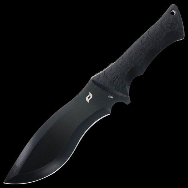 - Full tang fixed knife made from 8Cr13MoV stainless steel, titanium coated drop point style blade. Black TPE handle with lanyard hole also includes a thermoplastic sheath for transportation.