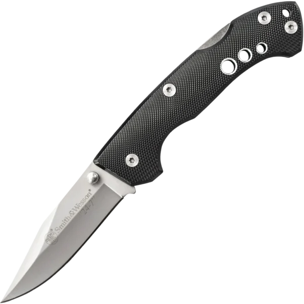 The Smith & Wesson CK109 lockback folding knife features a clip point blade that has been manufactured using 7Cr17MoV high carbon stainless steel. Extremely light weight and easy to carry the black anodized aluminium textured handles feature a lanyard hole at the base and comes equipped with a secure yet removable stainless steel pocket clip for convenient carry options.