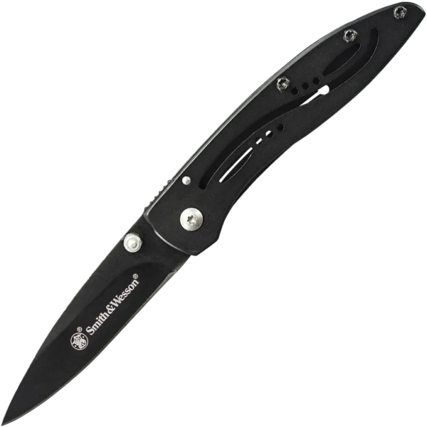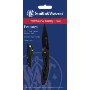 The Smith & Wesson Little Pal CKLPB is an ultra thin folder for pocket carry. It sports a stainless steel frame lock handle with decorative cut-outs on front and an open build for easy cleaning. The Little Pal has dual thumb studs, sized for easy one-hand opening. This CKLPB model features a black finished blade and handle.