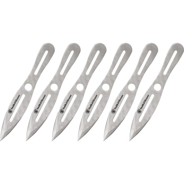 - This Smith & Wesson Bullseye pack is a set of three throwing knives, measuring 8" each and crafted from 2Cr13 stainless steel satin finish. Comes with nylon sheath and slots for each knife.