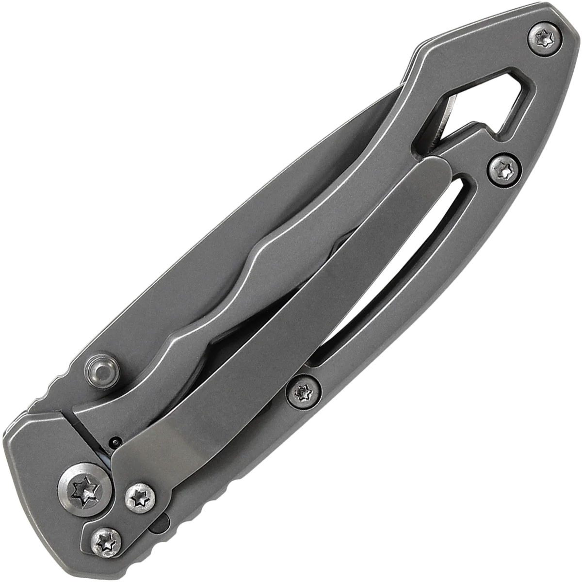 - Grey coated plain drop point 7Cr17MoV stainless steel blade, so it's ready to tackle bigger jobs on a day-to-day basis. Stainless steel skeletonized handle to reduce weight, uses a frame lock mechanism to ensure a securely locked blade.