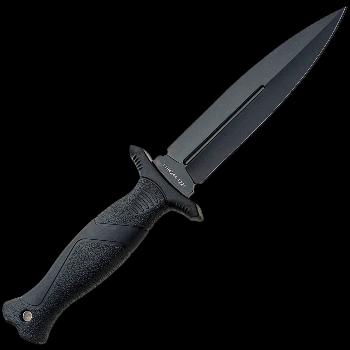 - The Smith & Wesson HRT full tang fixed blade dagger boot knife made out of a black high carbon stainless steel, a dependable choice.