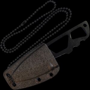 The Smith and Wesson SW991 Neck Knife is a value priced compact EDC with a variety of integral functions. The SW991 features single piece 8Cr13MoV stainless steel construction with all over non reflective black oxide finish; 2.5 inch drop point blade with bottle opener and notched thumb rest for secure grip, skeletonized handle with multi wrench and lanyard hole. A molded nylon fiber sheath with bead chain is included. The Smith and Wesson SW991 has an overall length of 5.5 inches, and it weighs a mere 1.5 ounces