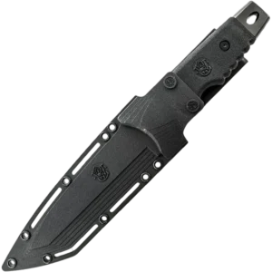 The Smith & Wesson SW7 fixed blade is a comfortable knife with an ergonomic zytel handle featuring finger grooves and blade guards for slip-resistance. The 9Cr17 steel tanto blade is titanium coated and sports a plain cutting edge. The included sheath is molded thermoplastic with a belt loop.