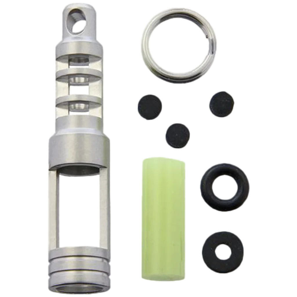 This incredible Isotope glow fob hybrid is a cross between our timeless stainless steel Embrite™ Glow Fob and the popular TEC-S311T Isotope Tandem Fob. Combining these two products have created a "Chain Reaction" with twice the glow! The Chain Reaction Fob is designed around two light sources. First up is the Embrite™ glow pellet which can be charged with ordinary sunlight or UV light. Once darkness comes, the included glow pellet provides a large surface area to easily find anything it is attached to. Embrite™ is TEC Accessories' proprietary glow technology. It affords the brightest, longest lasting 'glow-in-the-dark’ effect available and we've manged to squeeze it into a tiny, rugged glow fob. Even the best glow in the dark material will only last so long, as it relies on "charging" by a light source to work. So this is when the second light source takes over! The installation of a standard-sized glass tritium vial (not included) will provide a continuous soft glow for many years without ever needing to charge it from sunlight or UV light. The Isotope Chain Reaction Fob is a great way to add a functional dual-glow to anything you attach it to. And best of all, you can also change out the tritium vial anytime you like for different glow colors. Use different colors to identify different pieces of gear! Complete your EDC collection with the small and stylish Isotope Chain Reaction Fob, which provides just the right amount of light for locating items in the dark, ALL NIGHT LONG. Perfect for attaching it to your keychain, camping gear, zipper pulls on gear bags or jackets, or try it on the pull chain on your ceiling fan. Where will you clip yours? TEC-SCR Isotope Chain Reaction Fob Features: Custom designed to hold a standard 3mm x 11mm tritium vial Integrated proprietary Embrite™ glow pellet, your choice of green or aqua glow color Stainless steel housing Bead blasted, uniform matte finish What you get: (1) TEC-SCR Isotope Chain Reaction Fob Your choice of Embrite™ glow pellet color, GREEN or AQUA (1) Rubber Washer (1) O-ring (3) rubber plugs for tritium vial containment (1 required plus 2 spares) (1) 11.1 mm [7/16"] diameter split ring for attachment to other items Important Note: Product DOES NOT include tritium vial