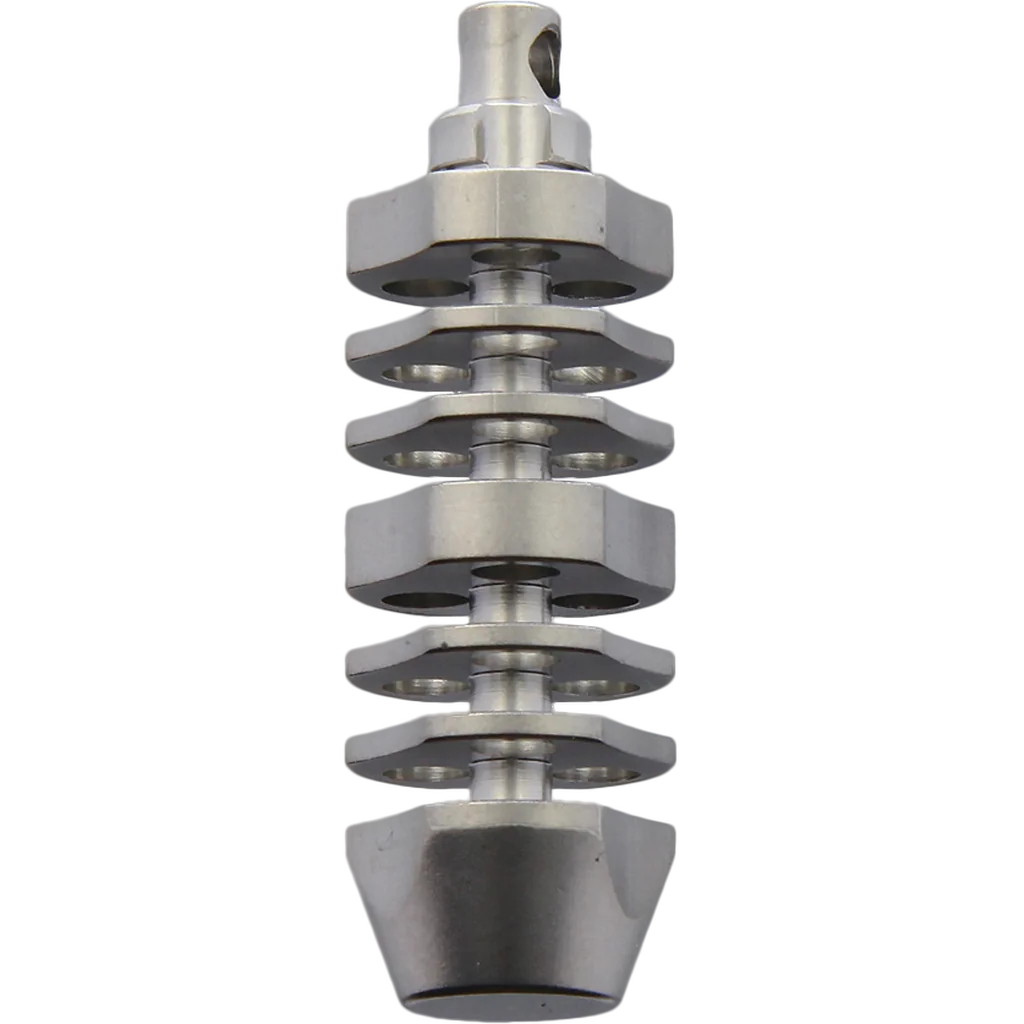 The versatile TEC Isotope Triode Fob is designed to hold several glass tritium vials (not included), which will glow continuously for many years without the need to charge it from sunlight or UV light. This version of Isotope Fob has 3 individual bores to house the tritium, hence the nickname "Triode". The Triode can hold several combinations of tritium vials, as each bore can hold either one 3mm x 23mm vial OR two 3mm x 11mm vials. Think of the color combinations! The TEC Isotope Triode Fob has three primary bores to hold the tritium vials, and the six grooves on the side of the housing provide maximum tritium visibility, yet offers superior protection of the glass vials. Once the tritium is installed, you simply insert the included rubber plug (spares included), install the o-ring over the post, and attach the split ring. This prevents the tritium vials from sliding out, yet provides an easy way to remove the vials if you want to change or re-position the colors. Complete your EDC collection with the functional and stylish TEC Isotope Triode Fob, which provides just the right amount of light for locating items in the dark. Perfect for attaching it to your keychain, camping gear, zipper pulls on gear bags or jackets, or try it on the pull chain on your ceiling fan. Where will you clip yours? Isotope Triode Fob Features: Custom designed with 3 bores Each bore can hold one 3mm x 23mm vial OR two 3mm x 11mm vials Combine different colored tritium vials for a beautiful effect Grade 5 titanium housing Bead blasted, uniform matte finish What you get: (1) TEC Isotope Triode Fob Packaged with (5) rubber plugs for tritium vial containment (3 required plus 2 spares) (2) O-rings (1 required plus 1 spare) (1) 11.1 mm [7/16"] diameter split ring for attachment to other items Important Note: Product DOES NOT include tritium vials