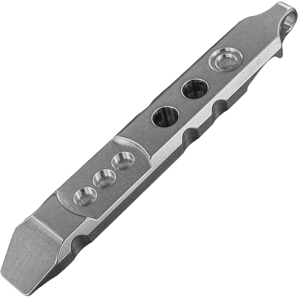 The Ti-Pry Keychain Edition is a mini titanium pry tool perfectly suited for everyday keychain carry. Small, lightweight and extremely durable, it can make those daily tasks and even the not-so-common chores a breeze to complete. Do you use a screwdriver to open boxes? How about a knife blade to pry open a paint can? Don't damage your good tools to do tasks they are not designed for! The Ti-Pry is a tough tool for tough jobs, but it works on simple tasks as well. Why carry numerous tools when one will get it done? Whether you need to open boxes, scrape, pry, or simply improvise for lack of a proper tool, you will be well prepared throughout your day. The pry tip on this Keychain Edition has a thinner profile than our Ti-Pry Pocket Edition, making it easier to get into those tight gaps. It's perfectly sized to be fully functional, yet discretely hangs on your keychain ready for action. And at the end of a hard day, the integrated bottle opener will certainly come in handy. With a total weight of just over half an ounce, other keychain tools simply cannot compete. Machined from grade 5 titanium, the Ti-Pry is well suited as a: Pry tool (of course!) Box/package opener Scraper Bottle opener Screwdriver Ti-Pry Features: Manufactured from grade 5 titanium to last a lifetime Corrosion resistant Integrated bottle opener/cap lifter Multi-functional tool profile with ergonomic grip features What you get: (1) Ti-Pry Keychain Edition titanium pry bar (1) Split Ring (1) Snap Clip Packaged in a foam-lined case