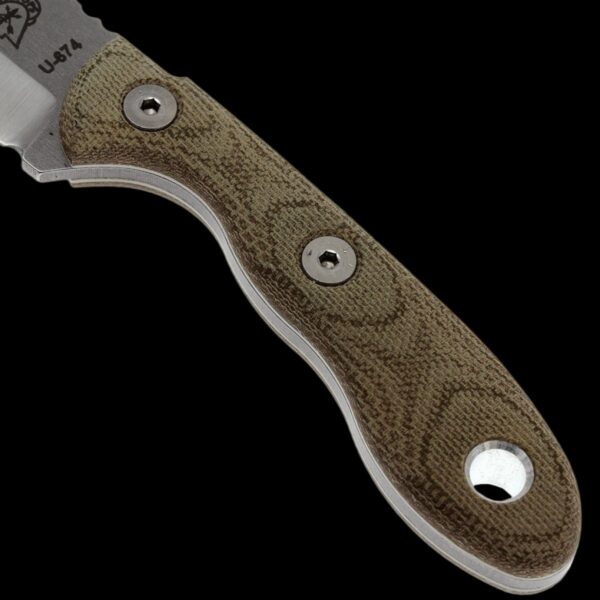 - This knife boasts a tumble finish with TOPS' famous modified scandi grind and Green Canvas Micarta handle scales.