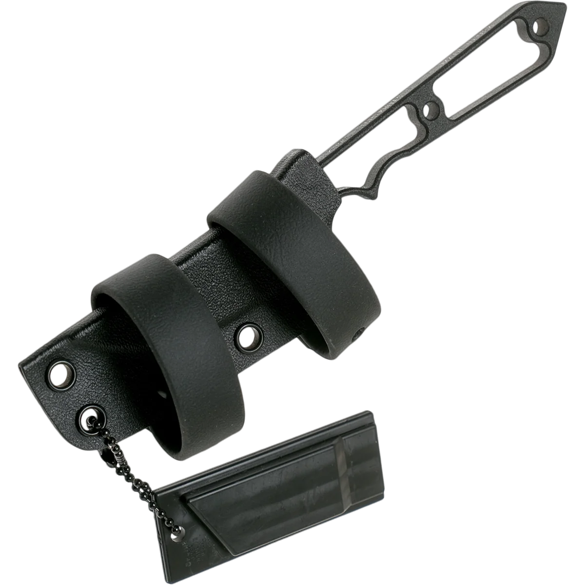 Well-known for producing interesting and wild designs, TOPS Knives knows that form follows function and the simplest designs can fulfill a need. Designed by CEO Leo Espinoza, the Spike is a basic, no-frills tool that combines strength and utility flawlessly, while keeping the cost as low as possible without sacrificing quality. Built from solid, 1/4 inch thick 1095 Leo reduced the weight by skeletonizing the handle. Holes are provided if you wish to add your own handles or wrap the handle with paracord if you need a more filling grip. By radiusing the edges he delivered unparalleled comfort for a knife with no scales while keeping a slim lightweight package. Add a simple Kydex sheath and you have a knife that could easily replace many EDC folders or fixed blades. Small enough to fit in a pocket and capable of being worn as a neck knife the Spike is elegant and functional in its simplicity.