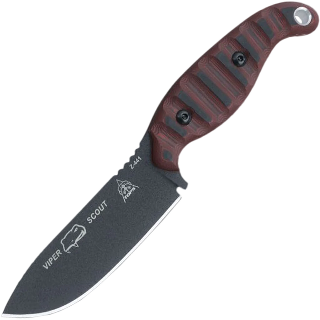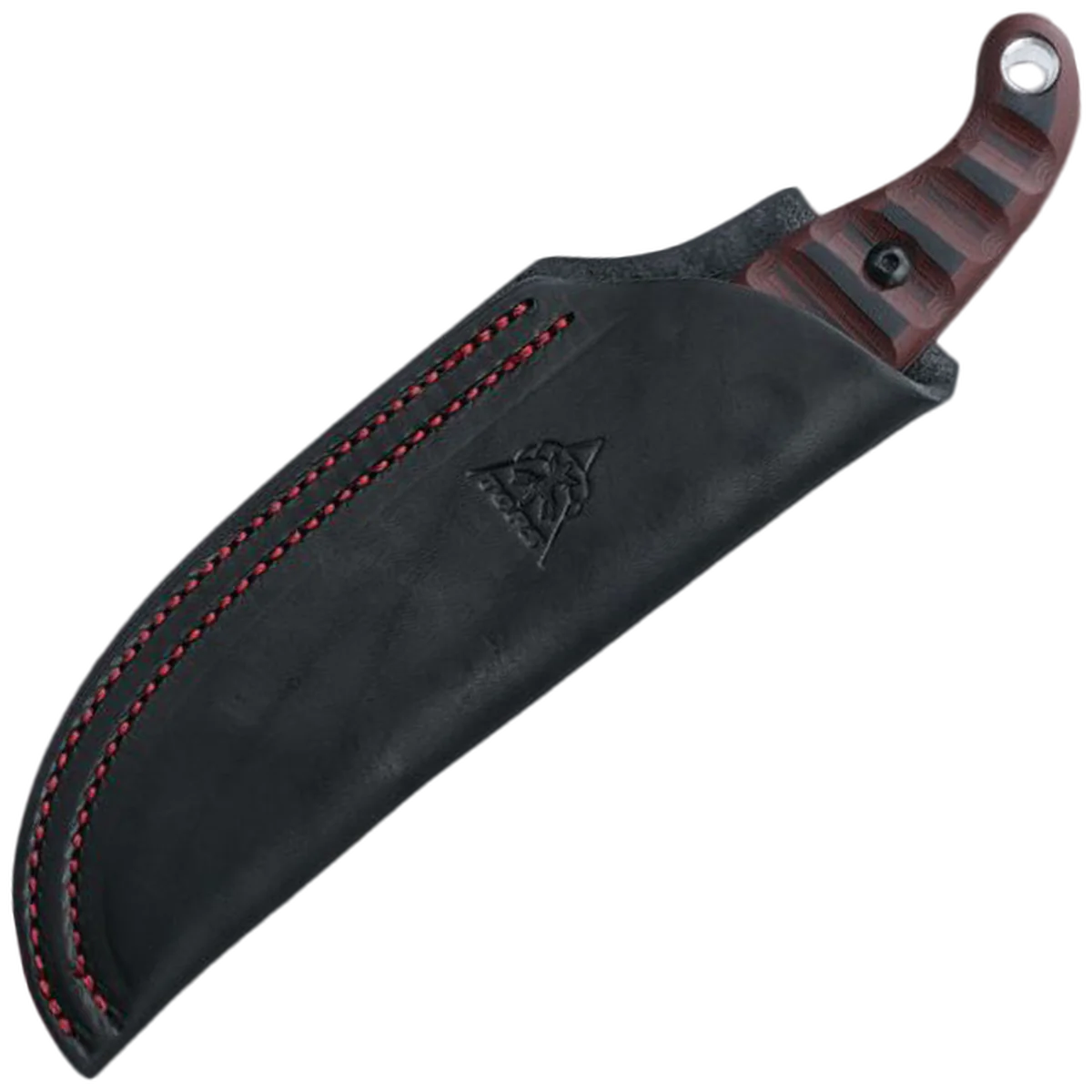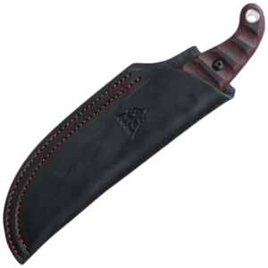 The Viper Scout performs proficiently in the field… just like it was born and raised there! The 1/8" thick 1095 steel blade is wider than your average knife, ensuring inherent strength. Leo, the designer, incorporated his newest version of the now, well-known Rocky Mountain Tread. A 100% leather sheath, made in Idaho Falls carries the knife close to the body with an easily accessible draw. This Viper Scout is outfitted with red/black G10 scales and includes a premium brown leather sheath.