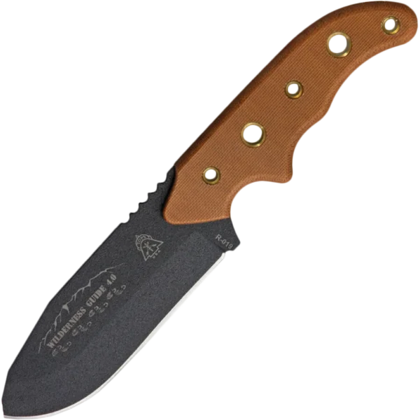 This knife is the result of long thought and substantial input from professional outdoor users. With some 16 million backpackers just in the USA, plus mountain bikers, trekkers, sea kayakers, climbers and survivalists, TOPS recognised that no single knife would suit every situation. The design is highly functional, using 1/8" thick, easy-to-re-sharpen 1095 high carbon steel. It has an exceptionally wide blade (1-1/2") with a blade length of 4.5". Leo Espinoza designed a functional handle that fits the hand well with excellent traction and a slight recurve at the back to keep the grip secure in wet conditions. Kit included: USA made emergency whistle (126 dB), dog tag sized signal mirror, steel snap link, Fresnel lens, 12 feet of trail marking tape (high-visibility orange) and a liquid-filled compass.