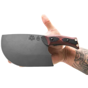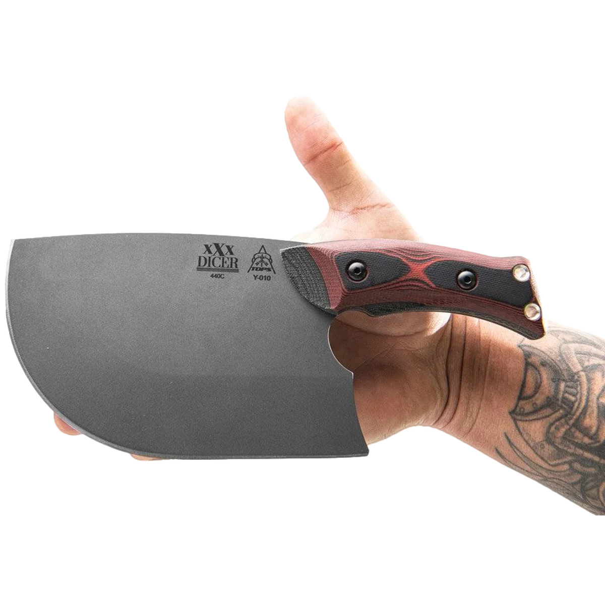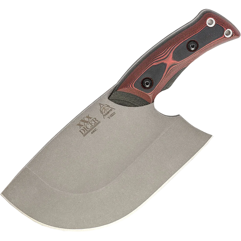 TOPS is dabbling more and more in the kitchen. Aside from the regular Dicer line, the XXX Dicer is a bit of a standalone piece for the kitchen. It’s made from a different steel than the rest of the Dicers, and its use is a bit of an enigma. Imagine combining a spatula with a cleaver and a chef’s knife. It’s a wide blade, almost 4” at its widest point, with a whole lot of belly. The handle has similar contouring to the Dicer 8 Chef’s knife, but it is pushed forward into the blade and designed specifically to provide a comfortable pinch grip when using it. Whether you’re cutting meat for tacos, veggies for a salad, smashing garlic, or any other myriad of uses, cut down on food prep time and dirty dishes by using the flat as a spatula. It’s a versatile kitchen tool you’ll find yourself using on a routine basis.