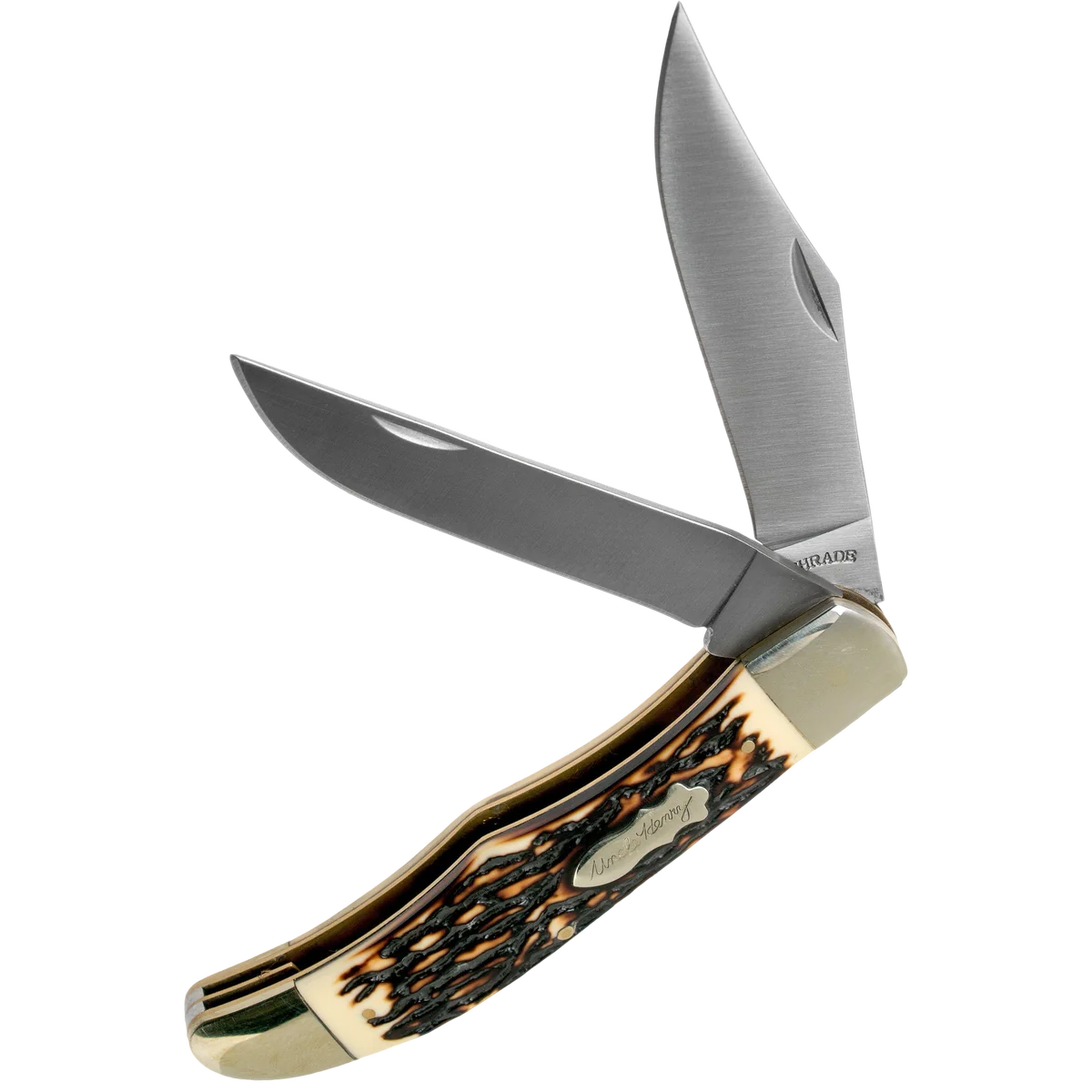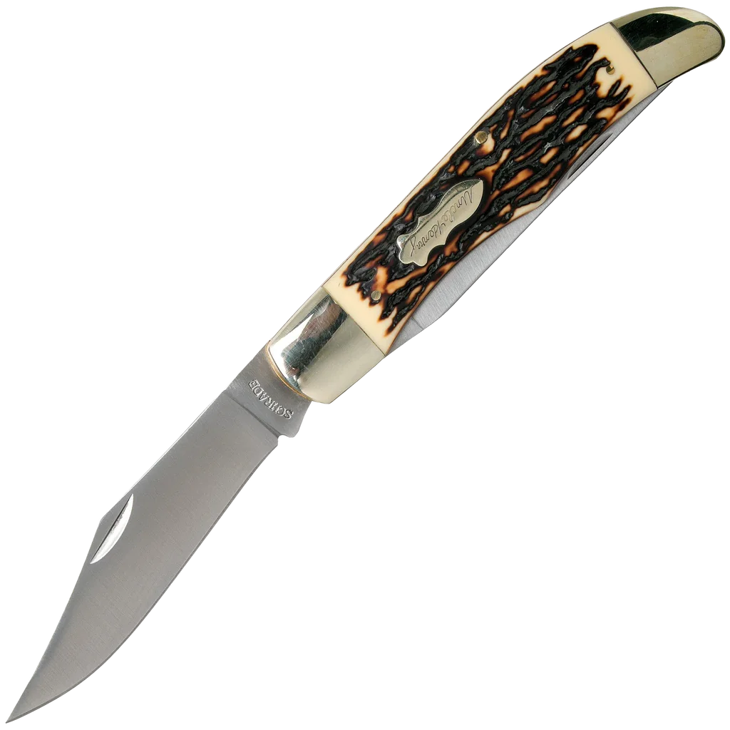 Uncle Henry pocket knives are crafted using solid brass liners and fittings, rugged Next Gen Staglon handles, and 7Cr17MoV high carbon stainless steel blades. This means you get a durable knife that you aren't constantly applying oil to prevent from rusting. 7Cr17MoV is a reasonably hard steel that will hold an edge well and possesses great corrosion-resistant properties. Uncle Henry knives are available in a number of fixed blades and traditional folding styles so there's bound to be something that catches your eye at a price you will definitely appreciate.