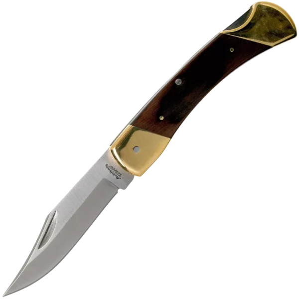 This Uncle Henry Bear Paw Pocket Knife embodies the traditional American pocket knife. The Bear Paw features a high carbon stainless steel clip point blade with a satin finish, heat treated back springs, and lock back construction. The handle features polished brass bolsters, stained wood scales, brass liners, and brass rivet construction. Comes with a button snap leather sheath with belt loop.