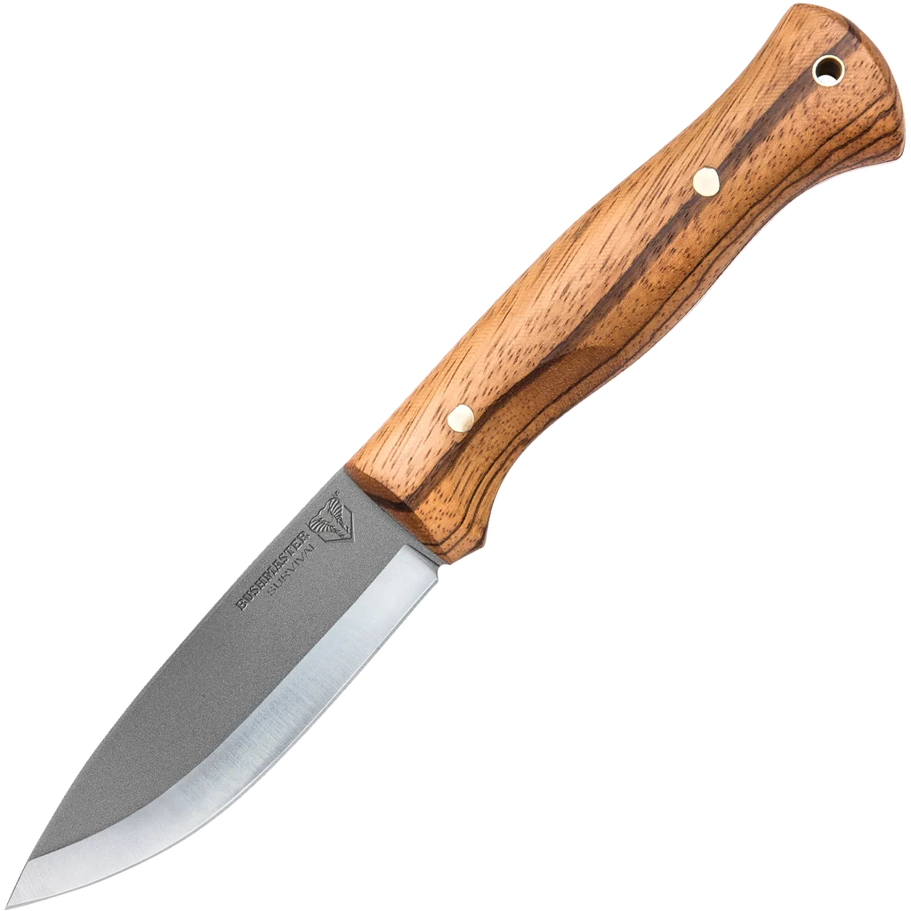 Bushmaster® will always have you covered in any situation whether you’re braving the Amazon jungle or the hunting trail! The full tang blades are crafted from slim profile, 1095 high carbon steel for superior edge holding. Both feature a gray hard coated surface that helps protect against corrosion. The hardwood handles have attractive brass pins and a paracord lanyard (not shown). Wood may differ from photos due to natural color and grain pattern variations.