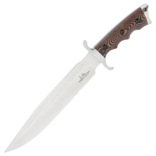 Using his firsthand experience as an Alaskan field guide, master knife-maker Gil Hibben crafted the GIL HIBBEN TUNDRA TOOTHPICK. The knife has a 9 3/8" 420HC stainless steel blade with a satin finish, complemented by a stainless steel guard. The CNC-machined Micarta handle scales are secured to the tang by heavy-duty screws and the pommel features a lanyard hole. The 14 3/8" overall length fixed blade slides securely into a leather belt sheath with a handle strap. Gil Hibben's design emphasizes durable, field-ready performance for outdoor and utility tasks.