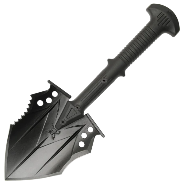 Features virtually indestructible, injection-molded nylon handle with 30% fiberglass & nylon reinforcement. The shovel head is made of tempered 2Cr13 stainless tool steel with a hard, black oxide coating. The shovel point edge is sharpened, with a partially serrated edge on one side, and a concave chopping edge on the other. Perfect for camping and outdoors use.