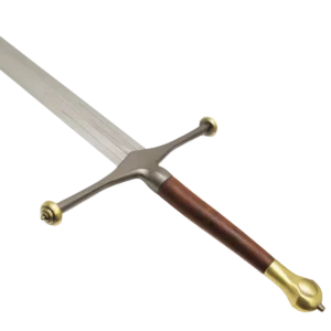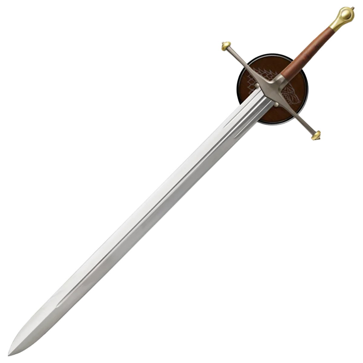 Stoic, duty-bound and honorable, Eddard "Ned" Stark embodied the values of the north. In moving to King's Landing to serve as Hand to his longtime friend Robert Baratheon, Ned fell on the wrong side of court intrigues and paid for it with his life. This collectible is officially licensed from HBO®'s hit series Game of Thrones® and is a serialized edition. It includes a display plaque and a certificate of authenticity. This officially licensed Game of Thrones replica of Ice features a blade of high carbon 1060 steel. The blade is etched with its production number at the base of the blade. This full tang replica has a crossguard of antique-finished steel and the pommel and crossguard ends are of antiqued brass. The grip is of red ebony hardwood. spacer The sword comes with a Silkscreened wood plaque with the Dire Wolf Sigil of House Stark upon it. Mounting hardware is included. A certificate of authenticity is included.