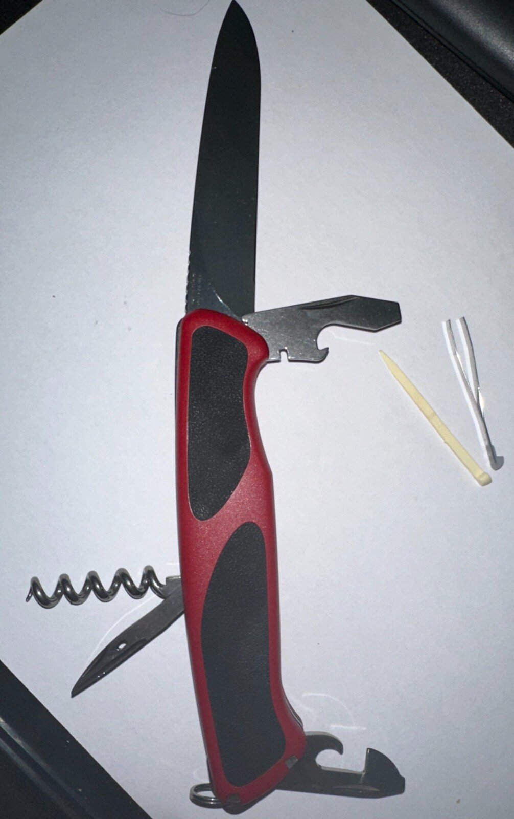 This is a scratch & dent version of: Victorinox Rangergrip 68 Red & Black (normally £51.95)