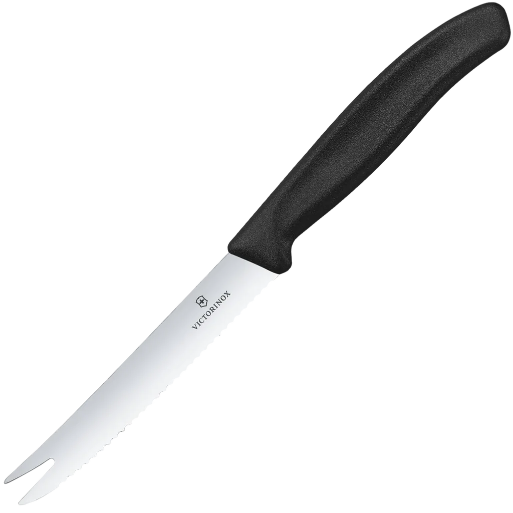 Almost any occasion warrants a cheese board, and the Swiss Classic Cheese and Sausage Knife is the right tool to accompany it. The blade's sharp, wavy edge cuts cleanly through cheese and sausage without sticking, while the ergonomic handle ensures a firm and comfortable grip. Use the handy forked tip to serve the snacks!