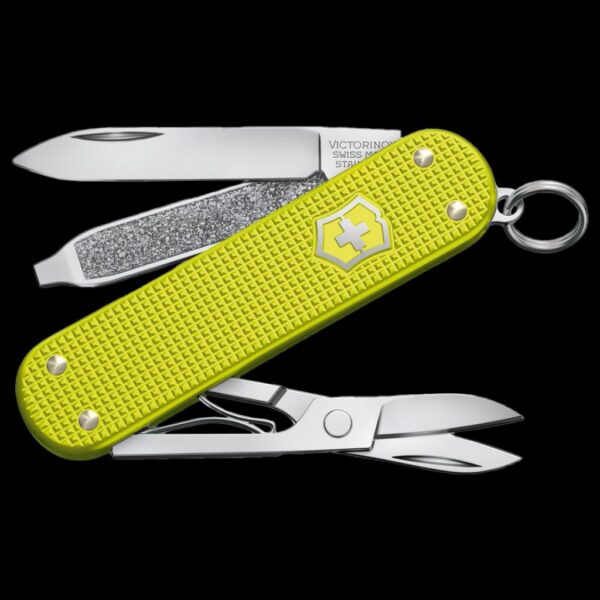 Get the energy, optimism and feel-good factor of Electric Yellow in a limited edition knife that makes everything shine. For 2023, the Alox Limited Edition is exclusively presented in an invigorating, intense Electric Yellow – with the robust, high-quality shells you are used to. This trio consists of the Classic SD, Pioneer X and Hunter Pro models. An ideal product line for collectors – full of positivity and dynamism for absolute power in your everyday life. The Classic SD features a Small Blade, Scissors, Nail file, 2.5mm Screwdriver, and Key ring.
