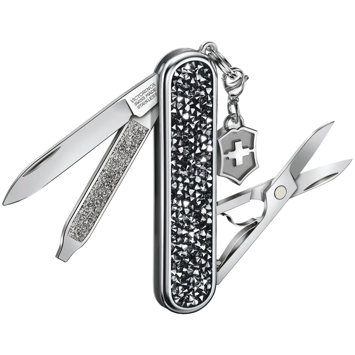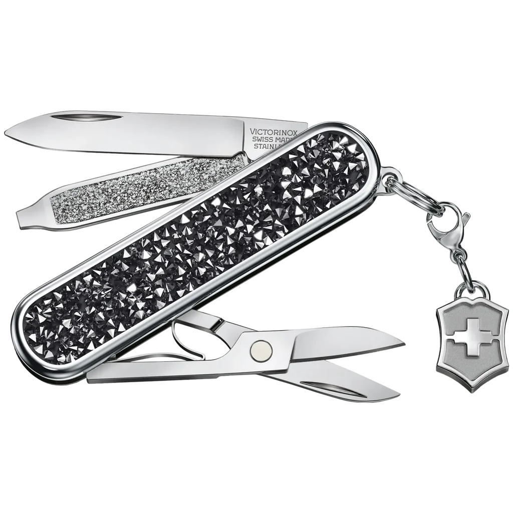 Give your everyday a dose of dazzle. The Classic SD Brilliant Crystal is embedded with finest-quality crystals, giving a luxe look alongside the impeccable functionality you expect from these compact pocket knives. Each piece sparkles with unique beauty and comes with an attachable charm and gift box to add to the exclusive feel. It’s a glittering reimagining of an icon. Refined on the outside, strong on the inside—the Classic Brilliant collection is a cut above the rest. Choose from three stylish models to reflect your personality and lifestyle, from the dazzling glamour of the Crystal, the sleek resilience of the Damast and the high-tech elegance of the Carbon. Each piece is crafted from the finest materials and comes with a special gift box.