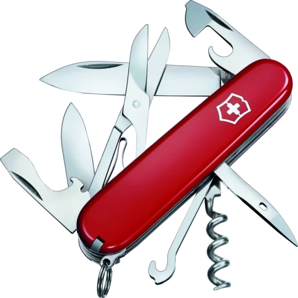 Welcome to the world of the Officer's knife. This is where the legend of the Swiss Army Knife began. And it continues today with the Climber pocket knife. Its 14 functions are as sharp, strong and intuitive as you need them to be. So no matter if you're climbing up the corporate ladder or a class 5 crag, the Climber is with you all the way to the top.