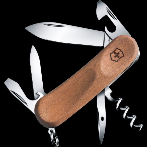 - Functions: Keyring, Large Blade, Nail File, Nail Cleaner, Serrated Edge Scissors, Corkscrew, Can Opener, Bottle Opener, Small Screwdriver (FH), Screwdriver (FH), Wire Stripper, Reamer Punch