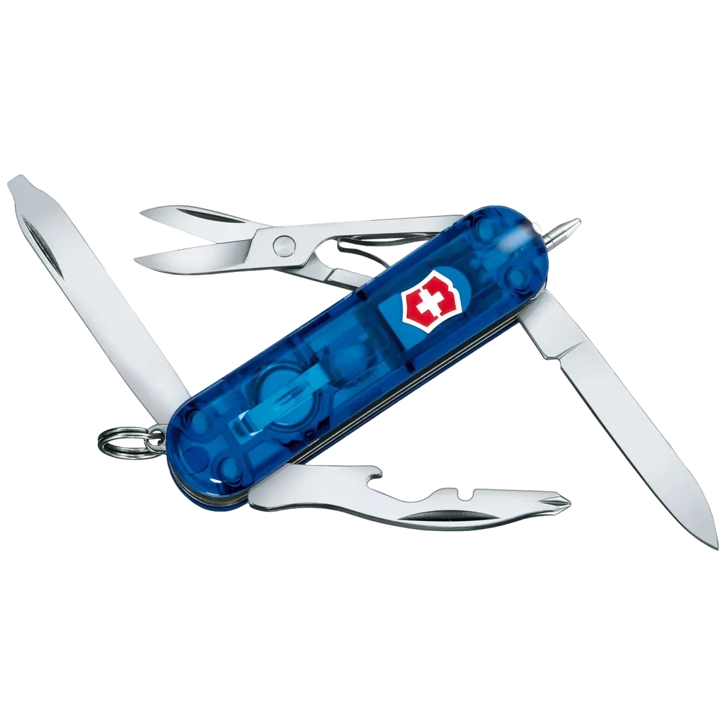 - Functions: Keyring, Small Blade, Nail File, Scissors, Bottle Opener, Mini Screwdriver (FH), Phillips Screwdriver, Ballpoint Pen, Wire Stripper, LED